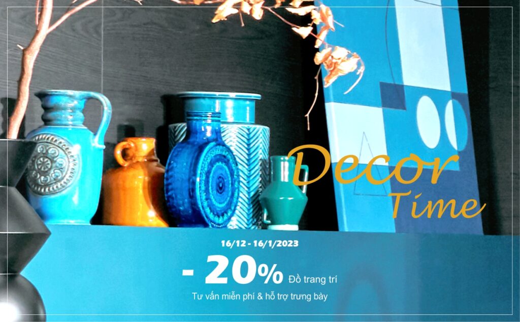 Đã đến thời điểm trang hoàng nhà cửa đón chào một năm mới, đã đến DECOR TIME. ‣ Tư vấn miễn phí và hỗ trợ trưng bày bởi đội ngũ thiết kế chuyên nghiệp. ‣ Giảm giá 20% cho tất cả đồ trang trí tại showroom. ‣ Chương trình áp dụng từ 11/01/2024 đến hết…