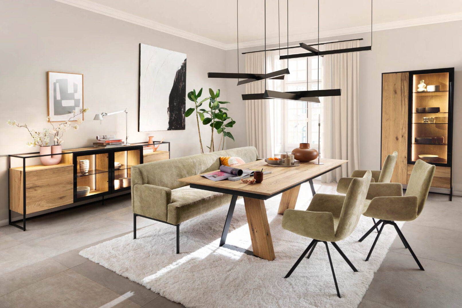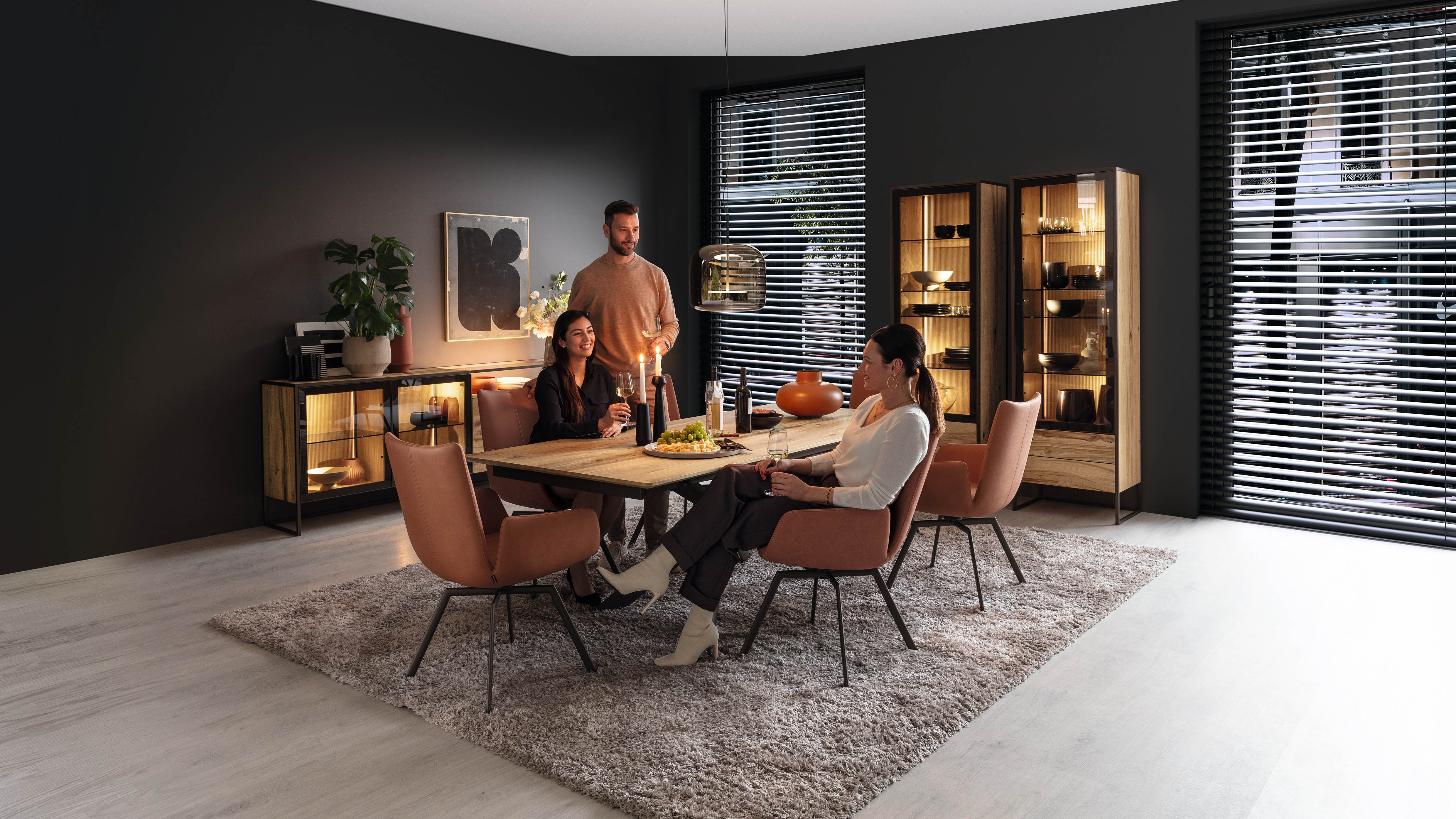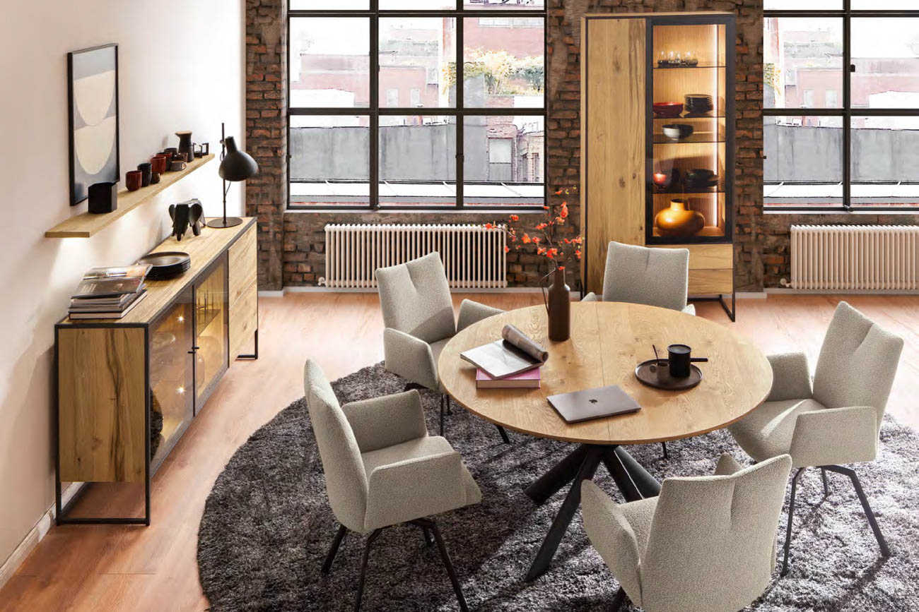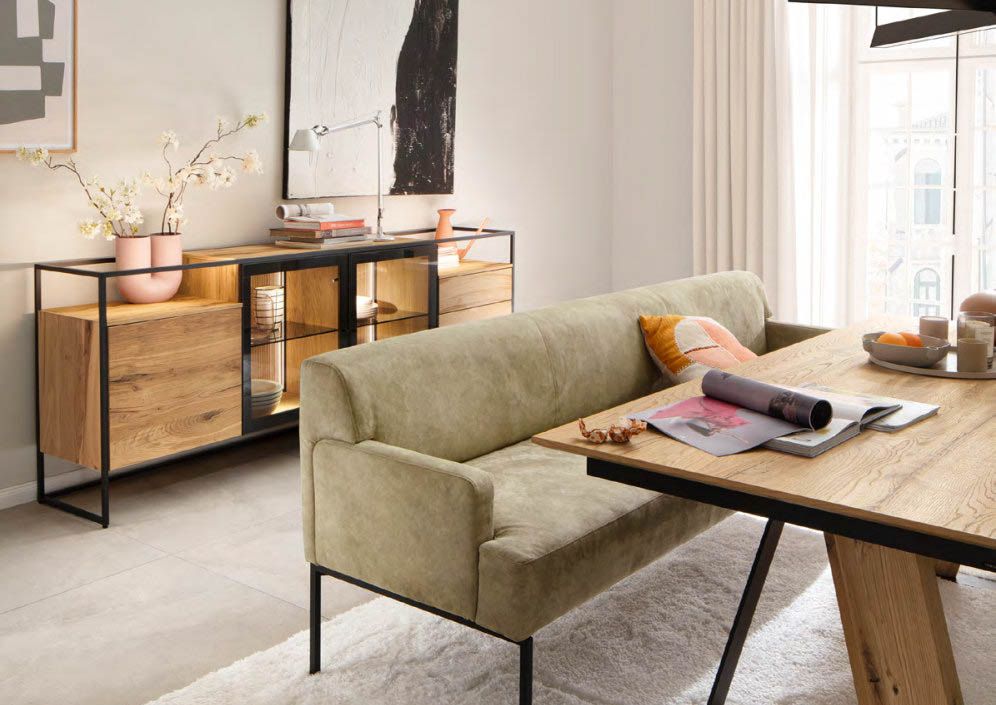 TAGENA lấy cảm hứng từ thiên nhiên, không phải bằng cách tái hiện nó, mà bằng cách tôn trọng nó. Gỗ sồi được phủ dầu thủ công, giữ nguyên vẻ đẹp tự nhiên của thớ gỗ. Khung kim loại filigree sepia matt mỏng, tạo nên ngôn ngữ thiết kế riêng biệt mà không lấn át chất liệu gỗ. Mặt trong tủ kính được xử lý vân rãnh nổi, đèn LED điều chỉnh được, cửa push-to-open, mỗi chi tiết là một lựa chọn có chủ ý. TAGENA là dòng nội thất cho những không gian biết cân bằng giữa ấm áp và tinh tế.
