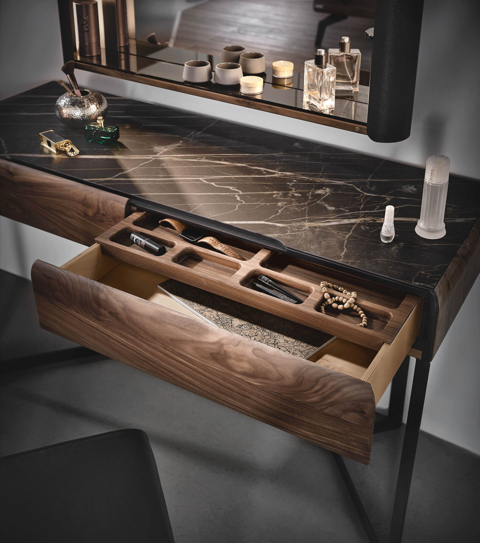 Với chủ đích đề cao sự khoáng đạt trong lối sống thành thị, Vento ra đời như để thỏa mãn sự tự do trong cách bài trí không gian phòng ngủ. Thiết kế của bộ sưu tập này cho phép giường có thể được đặt giữa phòng ngủ hay kê sát vào tường tùy ý. Sự pha trộn hài hòa giữa gỗ óc chó, gốm và kim loại ở một mức độ hợp lý đã làm tôn lên tính độc đáo ở Vento.